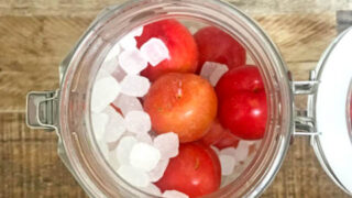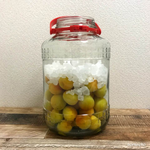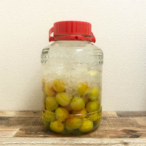 - 梅を瓶に入れ、その上から氷砂糖を入れる